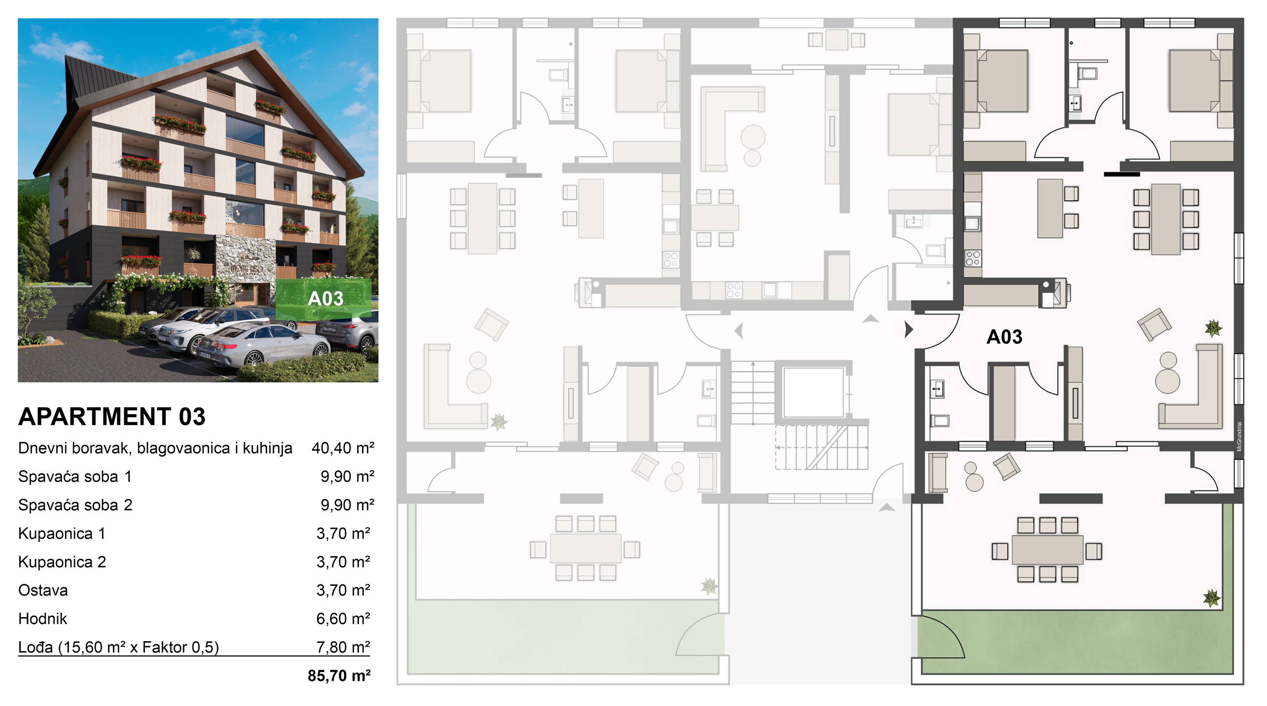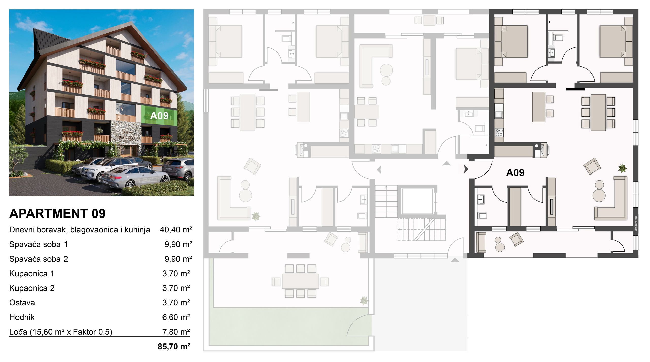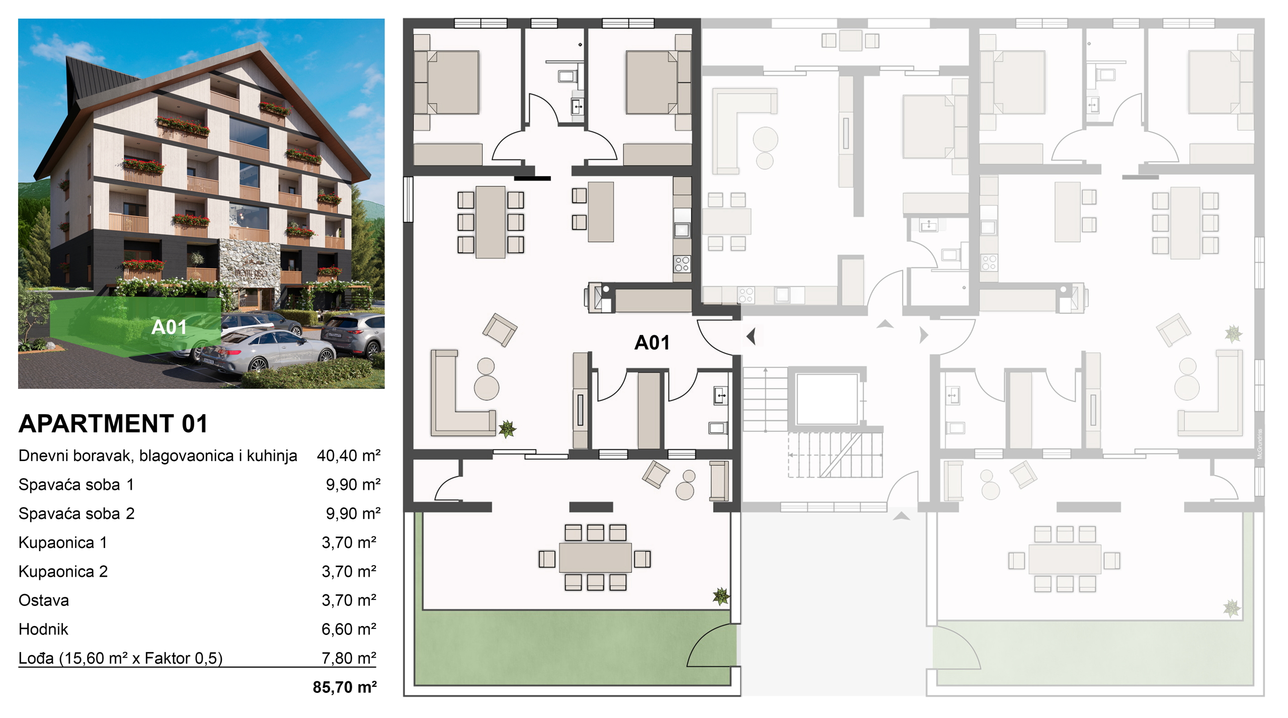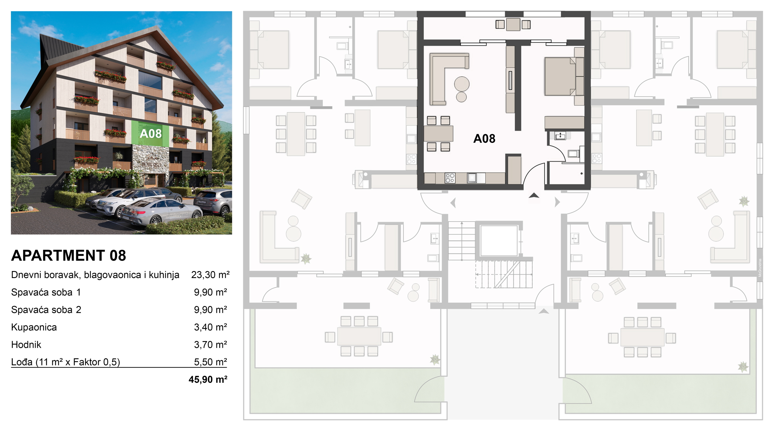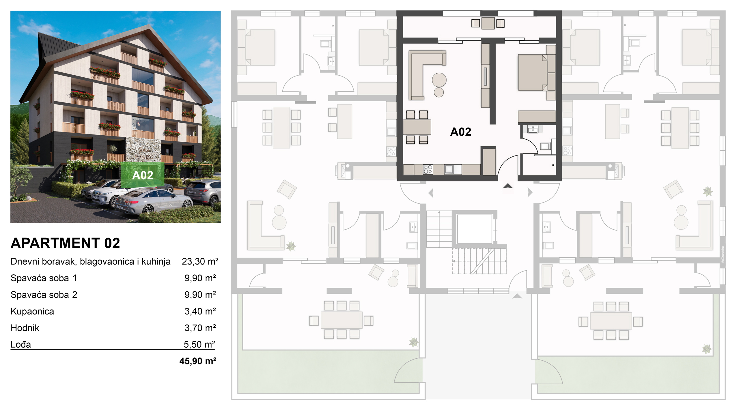Samo 250 metara od skijaške staze Blidinje, jednog od najpopularnijih skijališta u blizini jadranske obale, MonteRiso nudi svojim stanovnicima prekrasan pogled na okolni krajolik i planine. U blizini su i brojni restorani i aktivnosti za slobodno vrijeme. Dok blagi povjetarac puše vašom terasom, uživajte u pogledu na impresivan planinski krajolik. Zelena oaza – savršeno mjesto za opuštanje. Planinski zrak i visoko uranjanje!